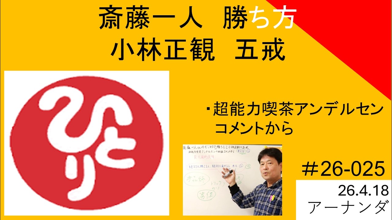 斎藤一人さんのビジネスでの勝ち方と小林正観さんの五戒|超能力喫茶アンデルセンの動画へのコメントから